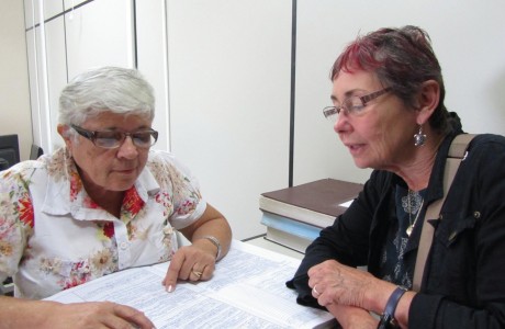 Dona Amantina (left), who maintains the ledgers at the municipality’s official registry office, updates the author on birth and death statistics