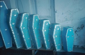 Before the demographic transition to lower death and birth rates, death came at any age in the municipality of Timbaúba. For many years, free plywood and cardboard coffins, like these standing at the ready in 1987 in the woodworking shop behind the town hall, were provided to the poor by the mayor’s office.