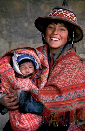A boy holds his sibling: The fine poncho is typical of Accha District of the Cuzco Region.
