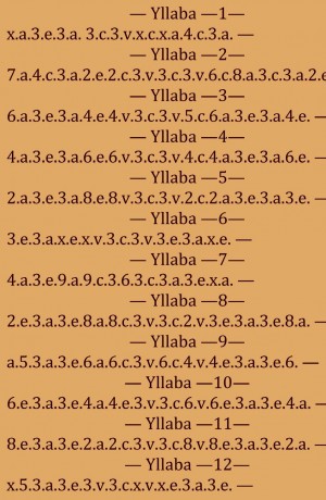 A series of letters and numbers is recorded in the 1590 chronicle Historia general del Piru, one of two manuscripts with that title compiled by the Spanish friar Martín de Murúa. He wrote that the code (here transcribed from an 1890 handwritten copy) constituted instructions for weaving a special sara (maize or corn) belt. The instructions remained a mystery until the code was deciphered by the French scholar Sophie Desrosiers, who reported her findings in 1984. Desrosiers, who had a practical knowledge of weaving, discovered some irregularities in Murúa’s numbers and letters, but the motifs they were meant to specify were clear.