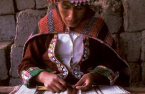 A weaver uses her llama-bone pick to select the yarns for the motifs on her textile, which is typical of the community of Anta, near Cuzco.