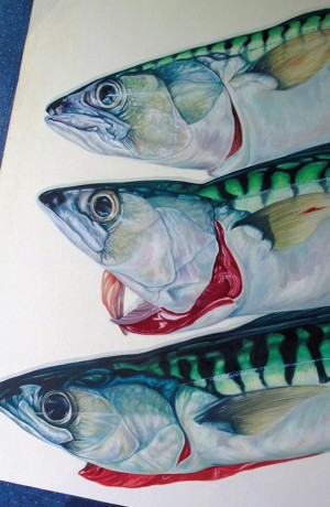 "Three Mackerel" oil on canvas 50 × 30 Iinches