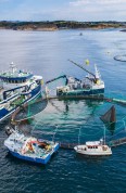 Vertical![]() A typical open-net salmon farm in Bergen, Norway with around 800,000 fish crowded into twelve cages, leaving the fish vulnerable to parasites and pathogens. Waste—excess feed, chemical residue, and fecal matter—is flushed out of the cages by the ocean but settles on the seabed below and forms a layer of slime that smothers marine life. MARIUS DOBILAS/SHUTTERSTOCK | Horizontal![]() A typical open-net salmon farm in Bergen, Norway with around 800,000 fish crowded into twelve cages, leaving the fish vulnerable to parasites and pathogens. Waste—excess feed, chemical residue, and fecal matter—is flushed out of the cages by the ocean but settles on the seabed below and forms a layer of slime that smothers marine life. MARIUS DOBILAS/SHUTTERSTOCK | ThumbA typical open-net salmon farm in Bergen, Norway with around 800,000 fish crowded into twelve cages, leaving the fish vulnerable to parasites and pathogens. Waste—excess feed, chemical residue, and fecal matter—is flushed out of the cages by the ocean but settles on the seabed below and forms a layer of slime that smothers marine life. MARIUS DOBILAS/SHUTTERSTOCK |