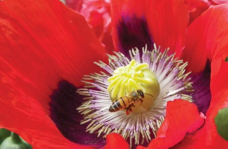 My experiment to lure a variety of pollinators to my garden with poppies didn’t entirely succeed. While both butterflies and hummingbirds occasionally flew into the garden, none stopped to feed. This observation satisfied my initial question about poppy pollination: poppies are not butterfly friendly. Although I’m not sure, I suspect the plants produce little or no nectar. However, because bees seemed to favor the poppies, I concluded that the plants were valuable to those insect—particularly important today since honeybees are experiencing a global crisis. Could poppy evolution have taken the path of utilizing pollen rather than nectar to lure pollinators?