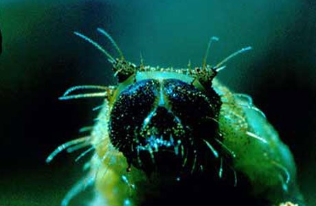 Protuberances over the caterpillar’s head shield two short sword-shaped beaters. These specialized appendages produce faint clicking sounds that attract wood ants.