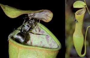 A new and cunning way of trapping insects has been discovered in the pitcher plant Nepenthes gracilis. Pitcher plants’ nectar attracts insects to their pitcher-shaped leaves, which are partially filled with digestive fluid. Insects typically tumble into the fluid and get digested when they lose their footing on the wet and slippery upper rim of the pitcher, or on the inner pitcher walls. A new study shows that in N. gracilis the lid, which keeps rain from flooding the plant’s pitcher, doubles as an insect catching device.