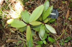 The strong resemblance between these two shrubs, along with their distinctiveness from other surrounding plants, suggest that A. pusilla may be a Batesian mimic of P. colorata. Conclusive proof of mimicry will require identifying an animal that consumes both of these plants and cannot distinguish between them, and demonstrating that A. pusilla benefits from its association with P. colorata. (Botany)